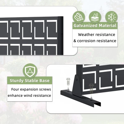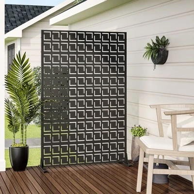 1-Piece Black Rectangle Outdoor Metal Screen Decorative Art Panel,Outdoor Garden Screen