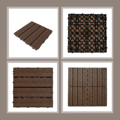 11 PCS 11.7″ X 11.7″ Textured Square Plastic Wood Deck Tiles, Outdoor Terrace Flooring In Brown