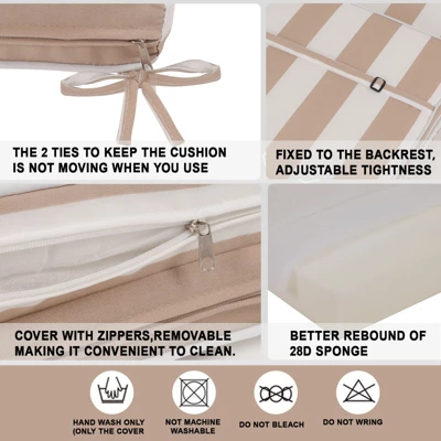 - Practical Design: An adjustable strap is designed at the back of the cushion cover, which greatly increases the adaptability of various types of chaise lounges.The seat cushion is also provided with straps, hold the seat in place