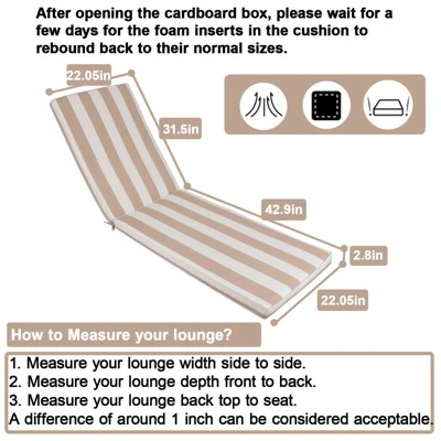- High Quality Material: This chaise lounge cushion is created with staple polyester cloth, which is year-round use,breathable and UV resistant,fade resistant, making this a versatile accessory that is perfect for outdoor use.