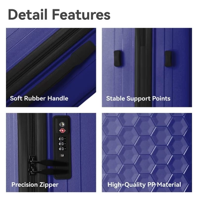 - High-Quality Luggage Sets: Crafted from 100% PP materials, these hardshell suitcases are durable, lightweight, and impact-resistant, showcasing a unique honeycomb texture for added protection and style.