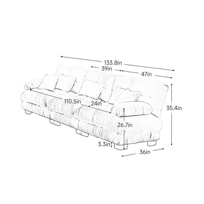 Elegant and trendy, this sofa is crafted from vintage Chenille fabric, offering a soft and resilient seating experience year-round. The round bolster armrests provide both a stylish accent and comfortable support for your arms and head. The cloud-like seat cushions, devoid of springs or wood, deliver exceptional support and bounce. The deep seats and additional throw and waist pillows ensure optimal comfort. Filled with high-resilience sponge and doll cotton, the cushions feel like sitting on a cloud, perfect for relaxation or reading. The sofa’s modular design allows for various configurations to suit your space. Please note that vacuum-packed cushions may take 2-7 days to return to their original shape and colors may vary slightly from the photo.