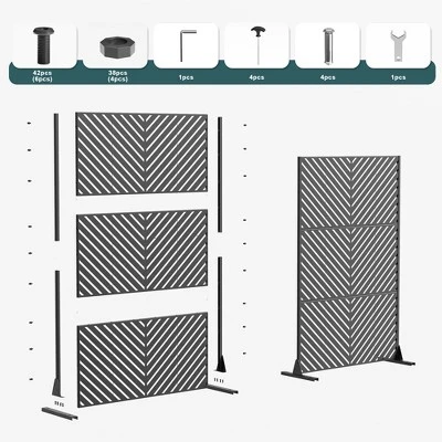 - Versatility: This metal privacy fence can serve multiple purposes. it’s perfect for enhancing privacy in backyards, porch, balconies. it can also serve as patio divider, outdoor room partition, a flower trellis, Wall decorations, living space dividers. it’s a practical and versatile choice for various outdoor and indoor applications.