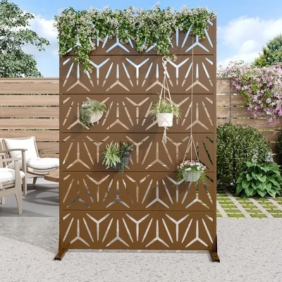 47-inches W X 72-inches H Brown Galvanized Sheet Screen Outdoor And Lndoor Divider For Balcony Patio Garden Room Divider(Star 01)