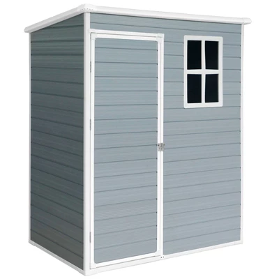 OUTDOOR STORAGE SHED: Features a slim footprint design for lawn equipment and gardening tools while fitting nicely along a house or garage when yard space is limited.