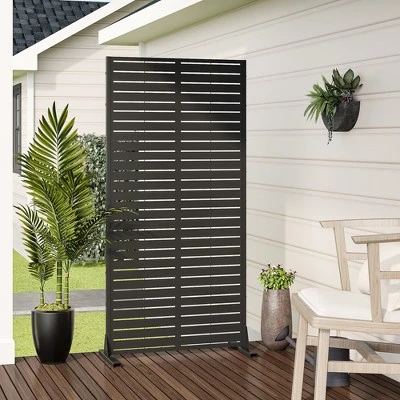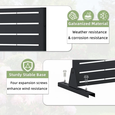 This freestanding decorative screen is designed to enhance your deck, balcony, patio, or any outside area like a lawn or garden. Crafted for durability and style, it serves as an elegant privacy fence panel, adding a touch of sophistication to your environment while providing seclusion. Its robust construction ensures it can withstand the elements, making it ideal for year-round use. Whether you’re looking to create a private oasis or simply add a decorative element to your space, our Metal Privacy Screen is the perfect choice. Upgrade your outdoor or indoor area with this functional and visually appealing privacy solution.