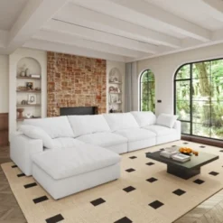 Cloud Sectional Sofa 107.9″ Upholstered Sofa Couch With Double-layer Cushion And Side Pockets