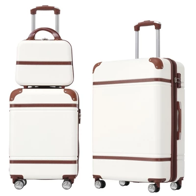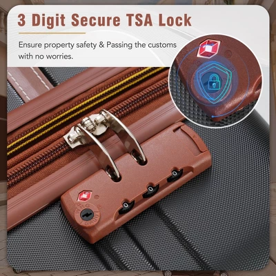 - 3 Piece Luggage Set Hardside Spinner Suitcase with TSA Lock 20″ 24′ Available. The 3 pieces set includes Cosmetic Case,20 inches and 24 inches luggages. One set just satisfies all your different travelling needs.