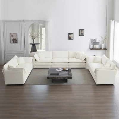 Elevate your space with our luxurious sofa, crafted from a robust solid wood frame and enveloped in premium breathable Chenille fabric. Padded with high-grade sponge, it offers both elegance and exceptional comfort, contouring to your body for ultimate relaxation after a long day. Versatile and adaptable, this sofa can transform into various configurations, including 2-seater, 3-seater, and more, allowing you to customize your living area with over 22 combinations. Experience superior comfort with thick foam cushions and enhance your relaxation by pairing it with an ottoman for extra leg room. Easy to assemble with all tools provided, this sofa is a perfect fit for any room. Maintain its beauty with regular dusting using a soft cloth. Your package may arrive in two separate deliveries, so please allow a few days. For assistance, our customer service is ready to help.