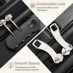 3 Piece Luggage Sets PC+ABS Lightweight Suitcase With Two Hooks, Spinner Wheels, (20/24/28) Gray