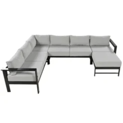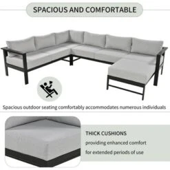 6 Seaters Gray U-Shaped Multi-Person Outdoor Sofa Set Suitable For Gardens Backyards And Balconies