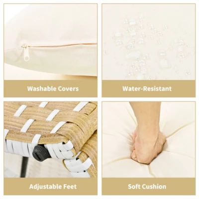 - [Functional Elegance with an Adjustable Table] At the heart of this daybed is an adjustable table that can be raised or lowered to suit your needs, whether it’s serving snacks, holding drinks, or supporting a good book. This functionality is enhanced by a cushion that can be added to convert the table into additional seating. The washable covers and buttoned cushions ensure that your daybed remains pristine, making maintenance effortless and keeping your outdoor space elegant and inviting.