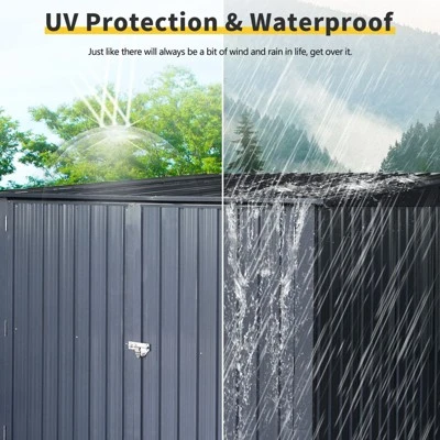 Strong and Durable Outdoor Storage Shed: This outside storage shed is made of 0.6mm thick galvanized steel plate & 0.25-0.6mm thick color steel plate that is built to last outside year round for seasons to come; This heavy-duty outdoor storage cabinet is rust, rot, fire, and water resistant