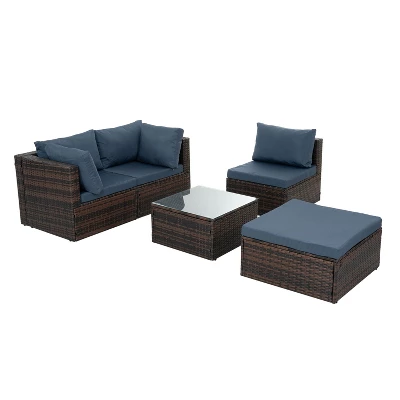 This outdoor furniture collection includes a tempered glass coffee table, offering a perfect blend of durability and style. The high-quality wicker construction is designed to withstand various weather conditions, ensuring long-lasting use. Whether you’re hosting a gathering or enjoying a quiet moment, this versatile set provides comfortable seating and a sleek coffee table, enhancing your outdoor decor. Create a stylish and inviting atmosphere with this durable and attractive wicker furniture set.
