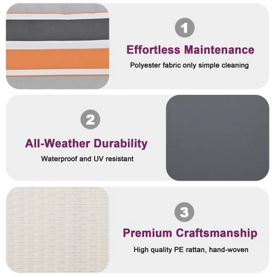 - Vibrant Pillows:This set includes a large seat cushion, back cushion, and two vibrant pillows. These colorful accents add extra comfort and can be positioned to suit your preference, enhancing your relaxation experience.