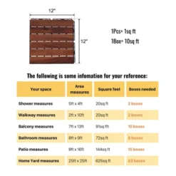 11 Pieces Of 11.7″ X 11.7″ Textured Plastic Wood Deck Tiles For Outdoor Terrace Flooring, Brown