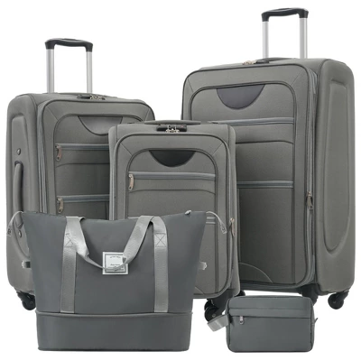 - [Include]Luggage set includes a 22-inch suitcase,a 26-inch suitcase,a 30-inch suitcase, a travel duffel bag, and a toiletry bag. The duffel bag has trolley sleeve with zippered pocket to pack your travel essentials, you can conveniently attach them to the adjustable suitcase handle to meet your needs.