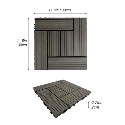 - High Quality:Our wood flooring tiles are made of wood-plastic composites. Wood-plastic composite material makes superior water resistance compared to natural wood, resistant to swelling or decay, slip resistant. Super durability and fade resistance.It is eco-friendly product for your home to create a beautiful space both inside and outside.
